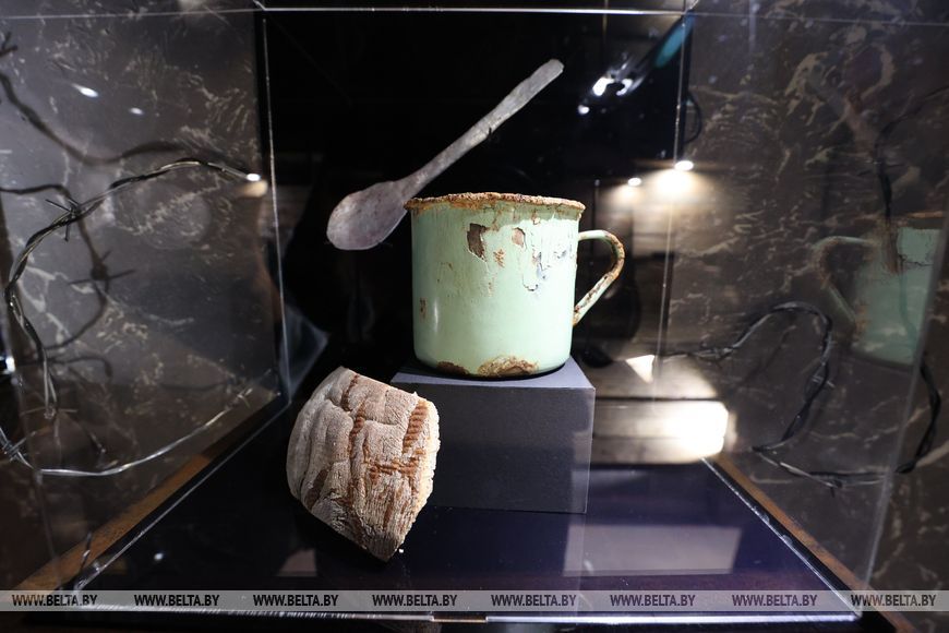 «При раскопках обнаружена и обувь военнопленных - в музей ее передали поисковики. Здесь же кусочек хлеба, такой, который выдавали на сутки. Но тот хлеб был с соломой, гнилой мукой и мышиным пометом», - рассказал отец Олег Кунцевич.