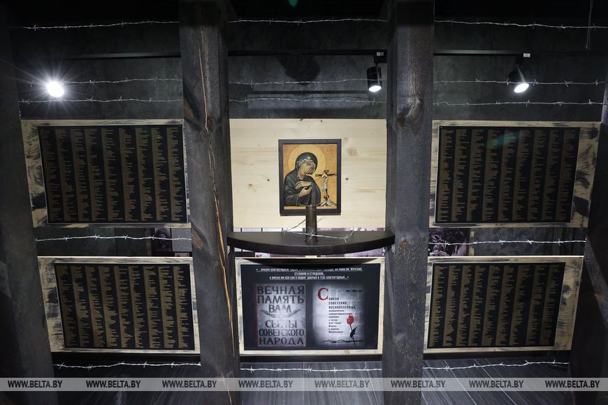 В небольшом отдельно стоящем здании православного храмового комплекса более четырех лет действует Музей подвига советских военнопленных - узников Шталага-352. Фотографии заключенных, разделенные колючей проволокой, уцелевшие после сноса бараков деревянные стропила с именами военнопленных, сложенные горкой пуговицы нашедших последнее пристанище красноармейцев и не только их - эти и многие другие артефакты собраны в двух помещениях.